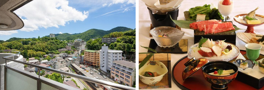 아리마 미야마에 둘러싸인 고대에 위치해, 눈 아래에 아리마 온천가, 그쪽에 단바의 산 풍경을 바라보는 전망이 자랑인 「아리마 그랜드 호텔」.