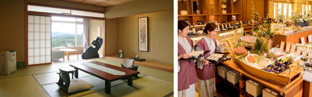 객실은 스탠다드 일본식 객실 10 다다미에서 마사지 의자가있는 조금 호화스러운 객실, 노천탕의 객실 등 완비!