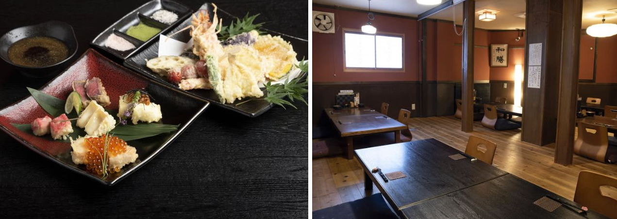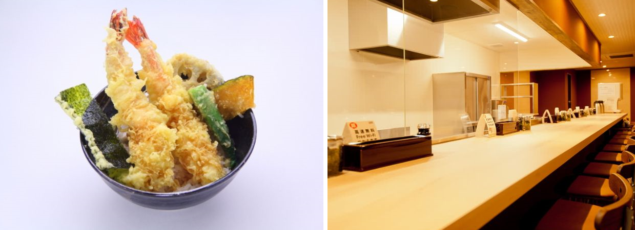 갓포 레스토랑(격식을 차리지 않고 친근한 분위기와 분위기의 레스토랑)을 운영한 경험이 있는 베테랑 셰프가 솜씨를 발휘하는 지역 중심의 튀김 덮밥 정식 레스토랑입니다. 새우, 호박, 가지 등 클래식한 재료를 사용한 텐동(410엔)과 튀김정식(510엔) 외에도 푸짐한 랍스타텐동(710엔) 랍스터 꼬리 2마리도 손님들에게 매우 인기가 있습니다. 닭가슴살을 튀겨낸 치킨 덴푸라, 치즈를 덴푸라로 만든 치즈 덴푸라 등 남녀노소 누구나 즐길 수 있는 메뉴입니다. 국내산 재료를 사용한다는 것은 품질을 희생하지 않고 저렴한 가격으로 음식을 제공할 수 있다는 것을 의미합니다.