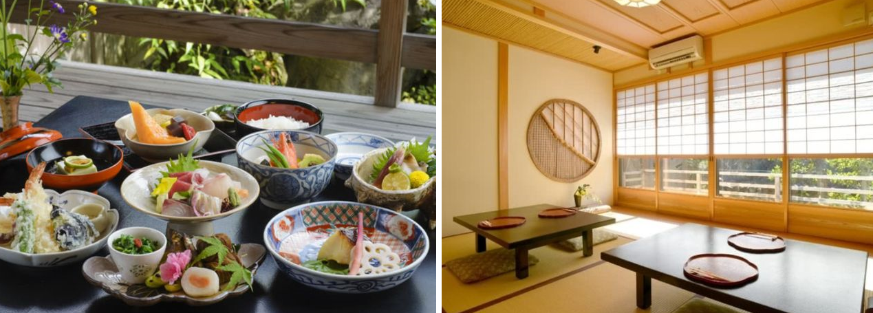 아라시야마의 그림 같은 풍경을 바라보며 비교적 저렴한 가격으로 정통 교토 요리를 맛볼 수 있는 레스토랑입니다. 90여년의 역사를 느낄 수 있는 격식 있는 다다미 다이닝룸을 갖추고 있으면서도 편안하고 캐주얼한 분위기가 이 공간의 매력입니다. 다양한 메뉴 중에서 제철 식재료를 고집한 덴푸라. 단품 메뉴에는 제철 야채 튀김(1,500엔)과 튀김 모둠(1,800엔)이 있습니다. 최고급 재료로 만든 육수와 같은 덴푸라가 아닌 요리도 일본 요리의 영혼을 느낄 수 있는 요리 경험을 제공합니다. 맘껏 즐기세요!