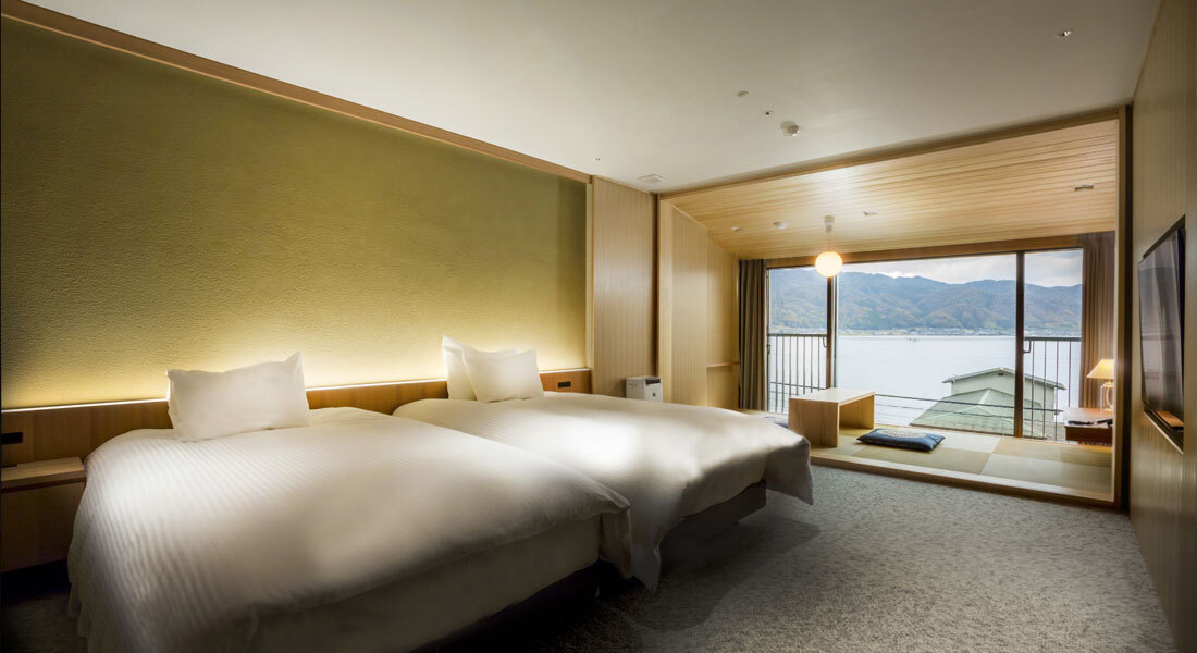 2층과 3층의 객실에서 아마노하시다테를 조망하실 수 있습니다.