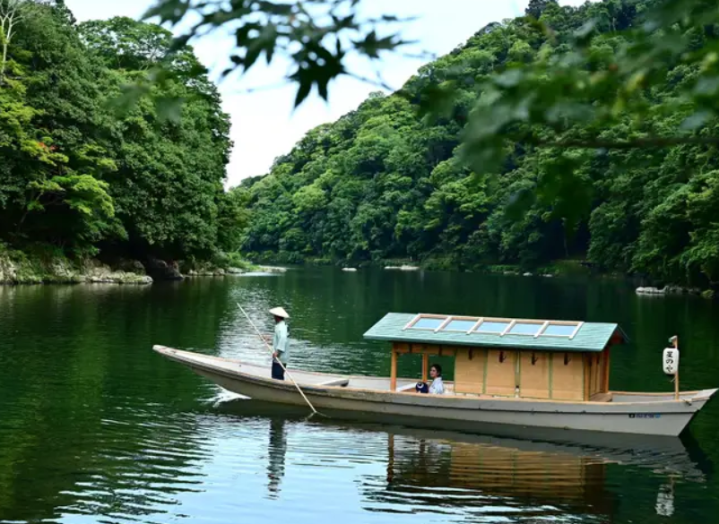 도게츠교의 남단에 있는 부두에서 숙소 전용 셔틀배로 오오이가와를 10분 정도 오르면 도착하는 「호시노야 교토」. 숙소에 도착할 때까지의 멋진 연출로, 두근두근하면서 다른 세계에 도착합니다. 부두까지는 「한큐 아라시야마역」에서 도보 약 6분이 소요됩니다.