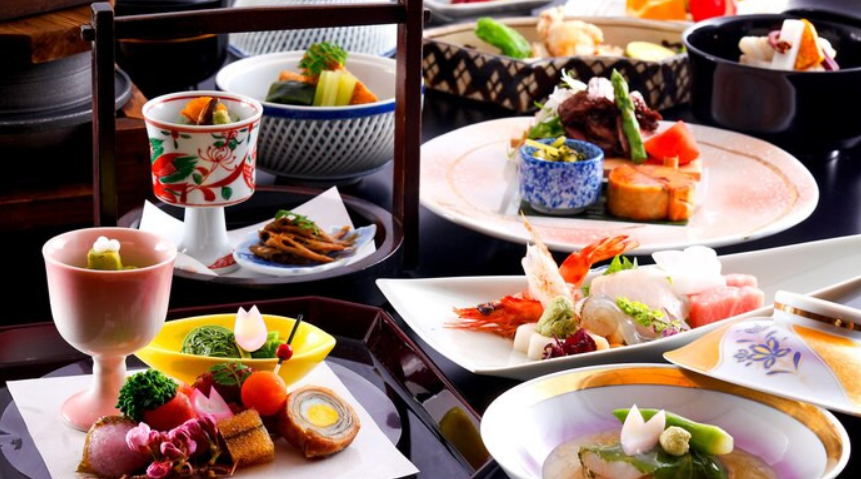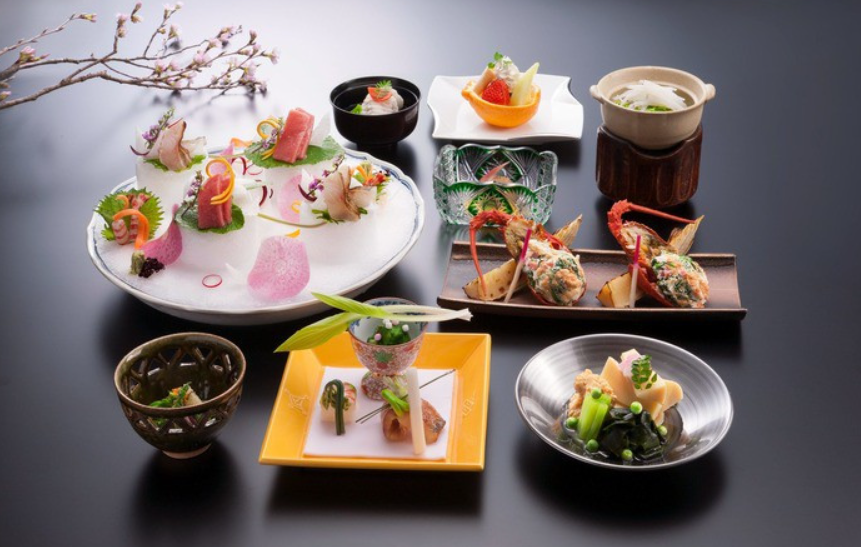 「도츠키테이」의 자랑의 하나는 식사. 저녁 식사는 매월 바뀌는 교회석을 식당에서 받습니다. 요리사가 팔에 의해 걸어 만든 요리의 여러 가지는, 예술이라고 할 수 있을 만큼 아름답고 물론 맛도 일품. 많은 저명인도 이 요리를 목적으로 숙박할 정도로, 기념일이나 특별한 날에 딱 맞습니다.
