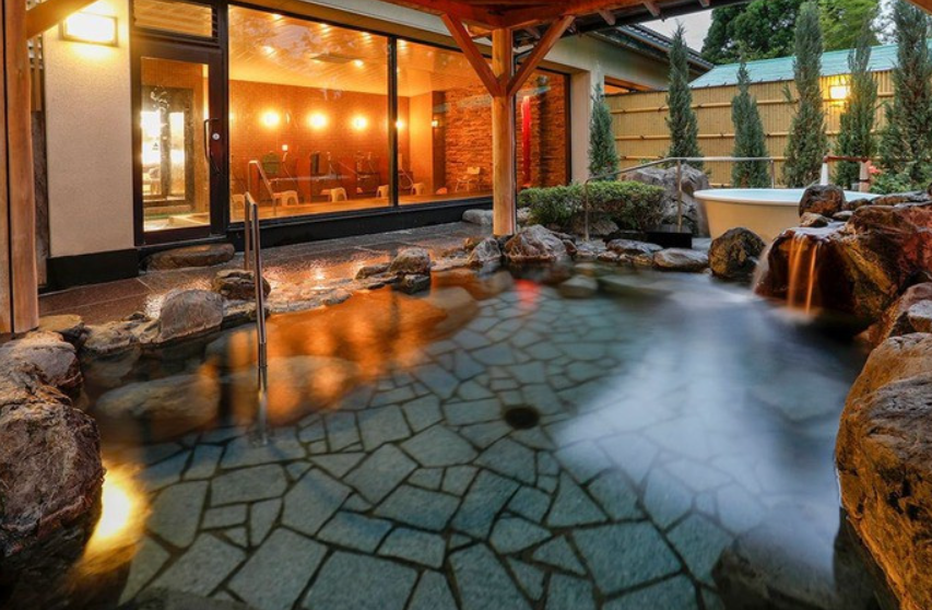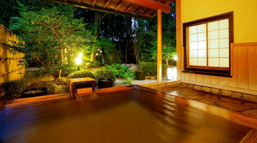 객실 노천탕의 온수는 자가원천의 천연온천이라고 합니다. 언제든지 들어가고 싶을때 온천을 즐길 수 있어서 좋습니다. 일본식 정원을 감상하면서 천천히 온수에 몸을 담그면 여행의 피로가 싹 날아갈거에요~