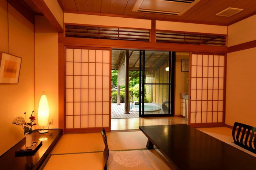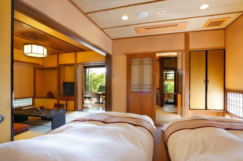 모든 객실에는 온천 노천탕이 있습니다. 넓이는 약 70평미로 느긋한 구조. 일본식 객실, 트윈 침실, 거실, 나무 갑판 테라스가 있으며, 그와 두 명의 긴장을 풀 수 있습니다. 커피 머신과 테라스 의자, CD 플레이어 등 비품도 충실합니다.