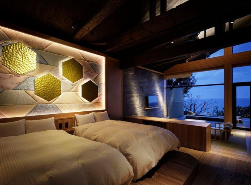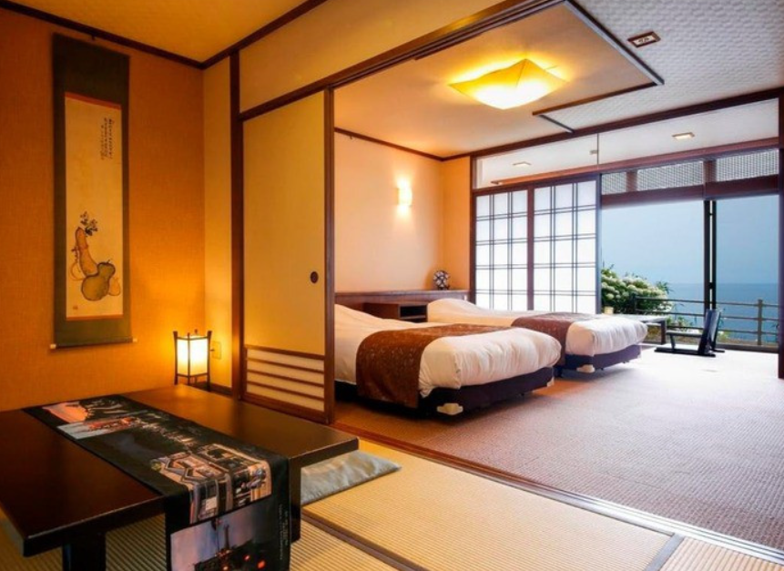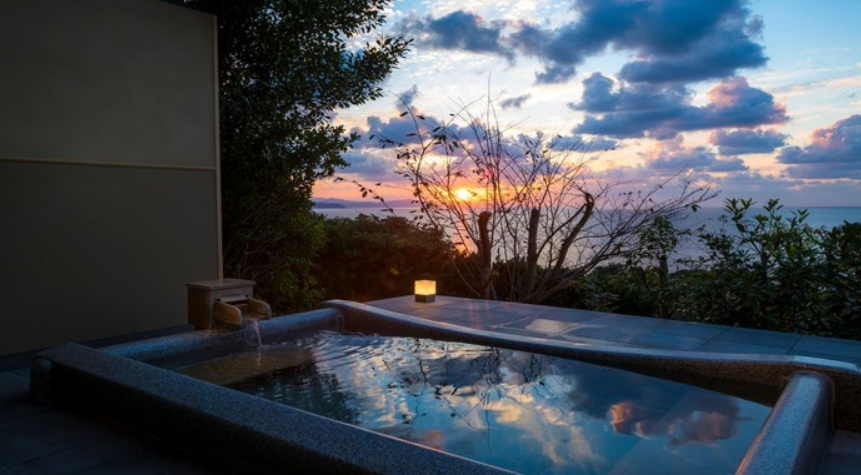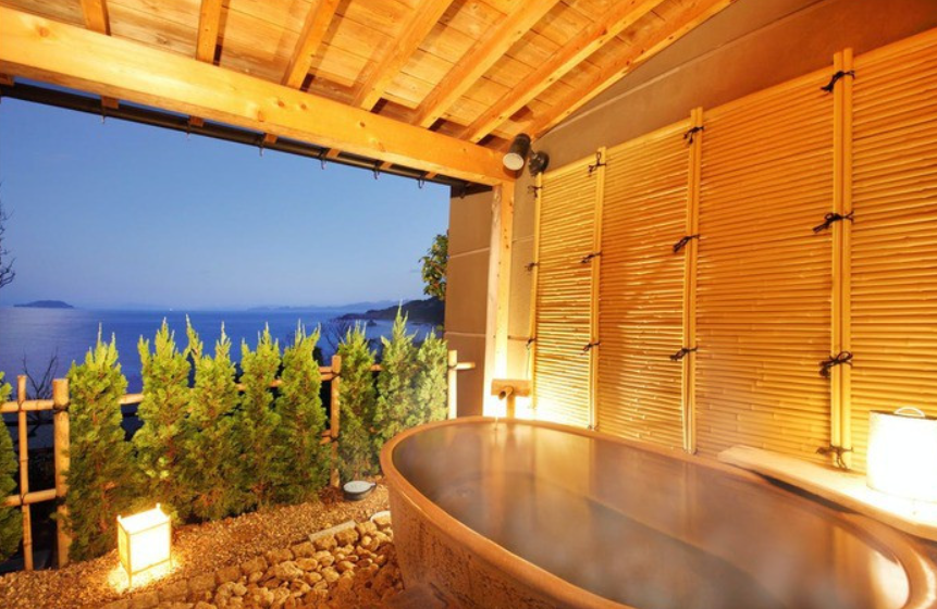 객실 노천탕에서 럭셔리한 천연 온천을 즐기면서 바다를 바라볼 수 있으며, 개방감이 탁월한 경관과 함께 온천을 즐길 수 있습니다. 이것이 온천 여행의 묘미입니다.