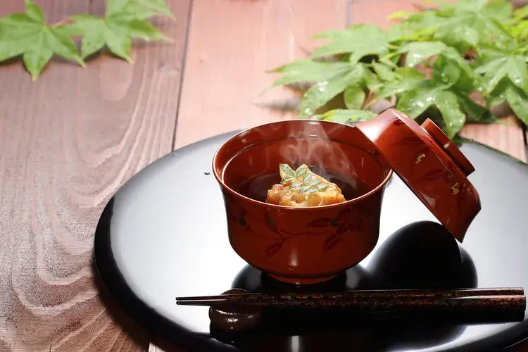 메인 코스의 첫 번째 요리는 종종 해산물, 두부 또는 야채로 장식된 작은 수프 그릇인 스이모노입니다.