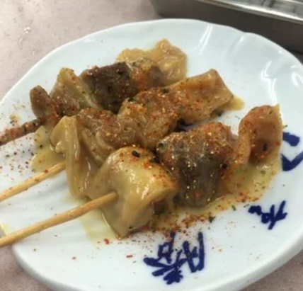 진장 요코초의 작은 꼬치 가게. 부드럽고 바삭한 식감!