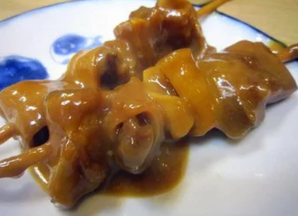 이쪽의 도어 도자기도 먹기 쉬운 꼬치 타입입니다. 달콤한 흰 된장 기반의 소스가 제대로 얽혀 일품!