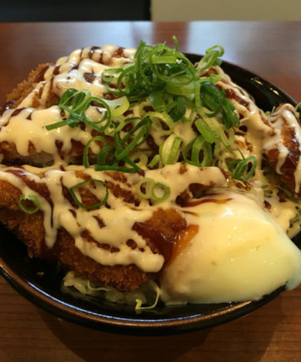 마요라 필견! 달콤한 마요네즈가 듬뿍 걸린 달콤한 돈까스 덮밥! 반숙계란을 더하면 부드럽운 식감으로 더욱 좋습니다.