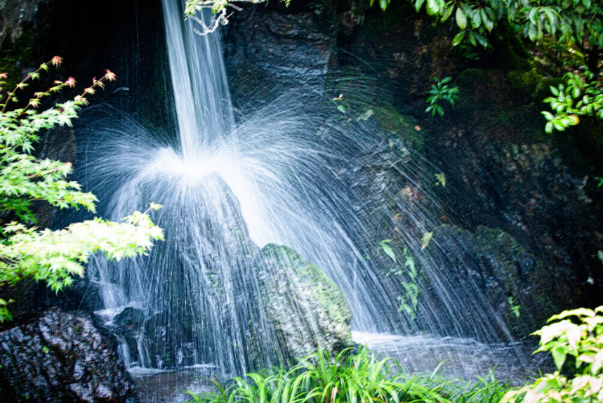 경내를 순로를 따라 걷고 있으면 보이는 것이 「류몬 폭포」입니다. 이 폭포에는 「잉어가 폭포를 오르면 용이 된다」라는 중국의 고사에 기인하여, 잉어에 흩어진 「잉어 어석(리교세키)」이 놓여져 있어, 출세 기원의 파워 스포트라고도 말한다 되었습니다. 남북조 합일을 완수하고 무로마치 시대의 정치와 문화를 구축한 아시카가 요시만에 연고가 있는 폭포가 되면 파워에도 기대할 수 있을 것 같네요!