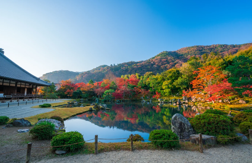 봄 여름 가을 겨울에 다른 표정을 보여주는 정원도 볼거리 중 하나입니다. 특히 선승 꿈창 국사에 의해 작정된 「소겐이치 정원(소겐치테이엔)」은, 일본 최초의 사적. 특별 명승으로 지정되는 정원. 주위의 자연을 정원에 녹아 넣는 「차경식 정원」이라고 하는 기법이 사용되고 있기 때문에, 조원지정원의 앞에 보이는 아라시야마는, 또 한가지 달라 각별! 아름다운 정원에 마음 치유되는 한 때를 보낼 수 있습니다.