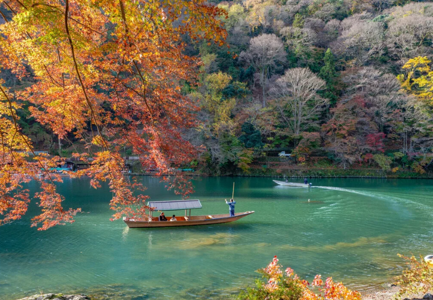 다만 다리를 건너는 것 뿐만 아니라 배로 오도리가와를 둘러볼 수도 있어요. 한마디로 배라고 해도, 선두가 장대 1개로 유람해 주는 포장마차선으로부터, 자유롭게 젓는 3인승의 렌탈 보트까지 다종다양. 포장마차는 사전에 예약하면 고급스러운 식사가 포함된 플랜을 즐길 수 있습니다. 선호하는 유람을 골라 선상에서 아라시야마의 절경을 마음껏 맛보세요.