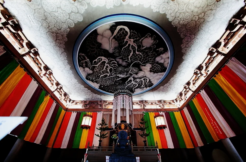 텐류지의 볼거리라고 하면, 역시 법당의 천장에 그려진 「운룡도」. 일본 화가 카야마 마타조에 의해, 직경 9m의 이중원상에 그려진 거대한 용은, 어디에서 봐도 이쪽을 노려보는 것처럼 보이는 「팔방 노려보는 용」이라고 불리고 있습니다. 지금도 천상에서 튀어나올 것 같은 압권의 박력은, 실제로 방문해, 본 사람만이 맛볼 수 있는 귀중한 체험입니다.