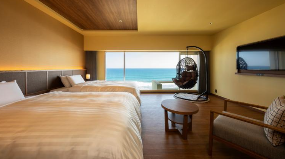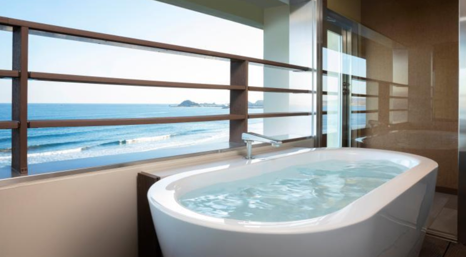 「노천탕이있는 프리미엄 디럭스」에서는 파도의 소리를 듣고 바닷 바람을 느끼면서 입욕이 가능합니다. 「뷰 버스 프리미엄」에서는 욕조에서 방 너머로 태평양을 바라볼 수 있어, 프라이빗 스파와 같은 감각을 맛볼 수 있습니다.