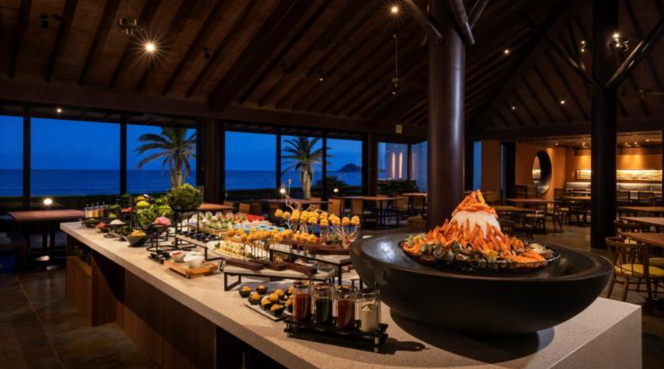 디너 & 브렉퍼스트에는 현지의 바다와 산에서 신선한 재료를 듬뿍 사용한 약 100종의 요리를 뷔페 형식으로 제공. 요리사가 눈앞에서 마무리하는 라이브 주방의 스페셜 메뉴와 어린이도 대만족의 키즈 메뉴, 채식 비건 메뉴도 준비되어 있습니다.