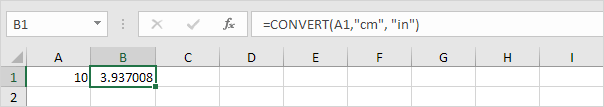 3. Excel의 CONVERT 기능을 사용하여 센티미터에서 인치로 변환할 수도 있습니다.