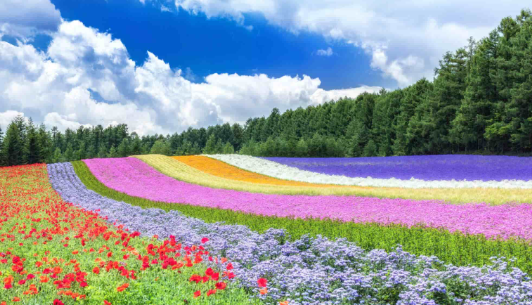 후라노는 홋카이도의 중앙에 있는 도시로, 꽃과 농작물이 잘 자라는 곳입니다. 후라노에서는 여름에는 다채로운 꽃밭을, 겨울에는 새하얀 눈밭을 감상할 수 있습니다. 후라노의 대표적인 꽃밭은 파르미 힐과 쇼와 신산입니다. 파르미 힐은 15만 평방미터의 넓은 면적에 30여 종류의 꽃이 피어나는 곳으로, 산과 하늘의 배경과 어우러져 환상적인 풍경을 만듭니다. 쇼와 신산은 화산 폭발로 생긴 산으로, 산 정상에서 바라보는 꽃밭과 호수가 아름답습니다.