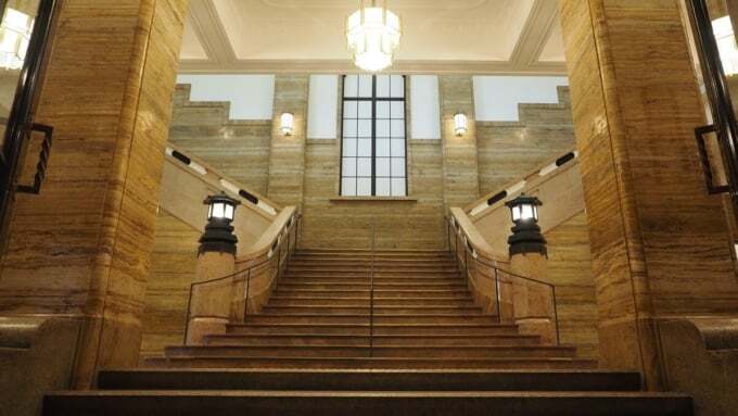 1933년 건축의 존재감 있는 니시히로마의 대계단. 친기둥이 등롱 바람으로되어 있습니다.