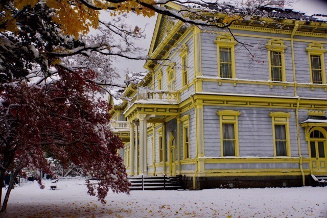 공원의 안에는 에메랄드그린이 멋진 서양풍의 건물이 있어요.