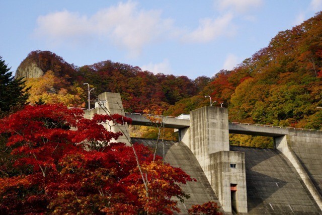 자연안에 녹아든 인공구조물 댐과 자연 그대로의 단풍의 콜라보레이션이 뭐라고 말할 수 없을정도로의 감동을 느낄 수 있는 이곳! 댐을 좋아하는 사람이 아니라도 홋카이도에 가시면 꼭 방문해보세요.