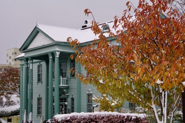 현재는 관광안내소로서 사용되고 있는데요.「구.홋카이도청 하코다테지청청사」와 단풍과 색깔을 맞춘 배경이 정말 예뻐요!