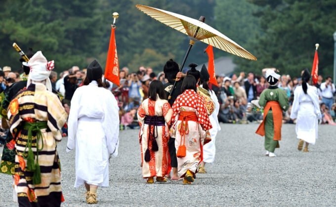 그 행렬은 2km 가까이 된다고 말해져 의상은 숙련된 기술을 가진 교토의 장인이 다루고 있습니다. 피리와 북의 소리가 울리는 가운데, 거리를 걷는 모습은 실로 경치 좋은 분위기를 느끼지 않고는 있을 수 없습니다. 이 축제도 꽤 혼잡하기 때문에, 천천히 보고 싶은 분은 유료 관람석의 이용을 추천합니다.