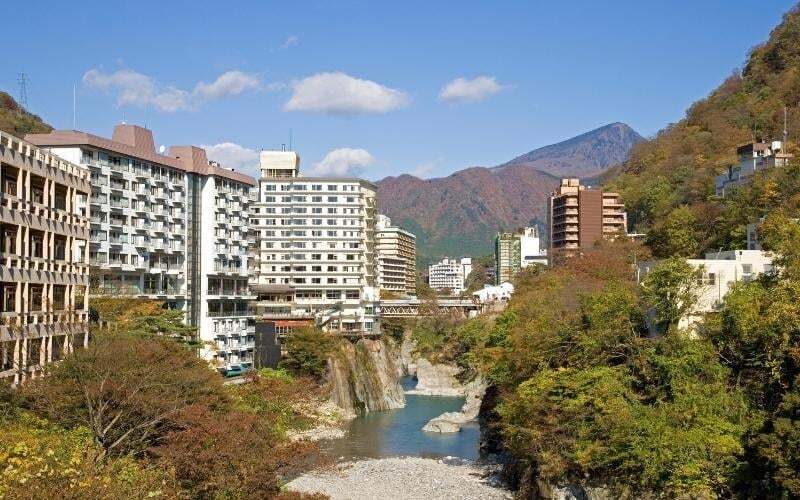 구사 쓰는 군마현 의 산맥 꼭대기에 자리잡고 있으며 도쿄에서 불과 2시간 30분 거리에 있습니다. 이러한 마을 배치는 산에서 천연 샘을 생성하는 데 도움이 됩니다. 이 발견 이후 구사쓰는 온천을 위해 일본을 방문할 때 인기 있는 목적지가 되었습니다. 마을에는 100개가 넘는 온천이 있어 이후 구사쓰의 주요 산업이 되었습니다.