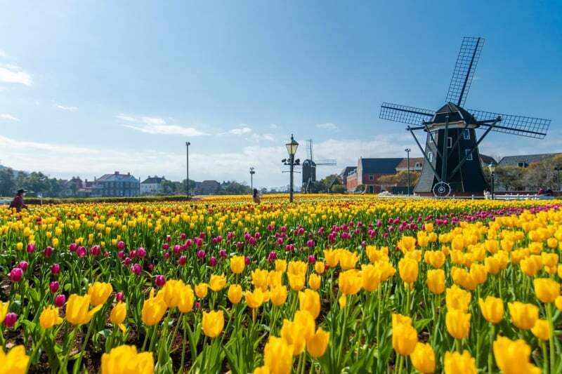 네덜란드풍이 가미된 일본 테마파크인 하우스텐보스는 아마도 나가사키에서 찾을 수 있는 가장 아름다운 장소 중 하나일 것입니다 . 네덜란드 왕실의 세 관저 중 하나의 이름을 따서 명명되었으며 일본과 네덜란드의 우호를 기리기 위해 지어졌습니다. 하우스텐보스에는 꽃의 힘으로 시작하여 즐길 수 있는 어트랙션이 가득합니다. 공원은 언제든지 수백만 송이의 꽃으로 장식되며, 모든 꽃은 계절에 따라 달라집니다. 봄에는 눈이 닿는 곳에 만개한 튤립이 여러분을 맞이할 것입니다. 한편 여름에는 해바라기 밭, 가을에는 아름다운 장미, 겨울에는 비올라 밭이 있습니다.