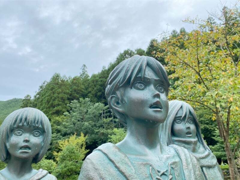 2019년 애니메이션 10주년을 기념하기 위해 Attack on Hita Revitalization Conference는 상징적인 월 마리아의 몰락 장면을 실제 생활에서 재현하는 프로젝트에 착수했습니다. 작품 속 월마리아를 상징하는 오야마 댐 앞에는 이야기 속 주인공 세 명의 동상이 있습니다 . 열렬한 애니메이션 팬이라면 히타시는 규슈 방문 버킷리스트에서 제외되는 곳입니다.