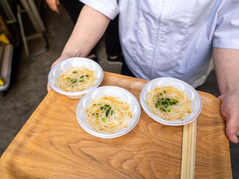 소면은 나가사키의 여름철 인기 음식인 길고 얇은 흰 국수입니다. 면의 쫄깃함을 만들기 위해 반죽을 휴지시킨 후 실처럼 가늘어질 때까지 계속해서 당깁니다. 겉보기에는 면이 튼튼하고 물에도 부서지지 않습니다. 힘든 준비 과정을 통해 한입 먹을 때마다 맛볼 수 있는 특별한 질감이 탄생합니다!