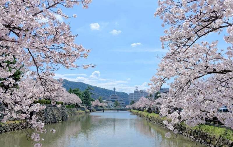 더 아름다운 벚꽃을 감상하려면 돗토리 성터 에 들러보세요 . 유적을 둘러싼 공원인 규쇼 공원에는 요시노 벚나무와 사토 벚나무 품종이 모두 자라고 있습니다. 도시에 위치한다는 것은 성 안뜰 꼭대기에 있는 전망대에서 돗토리 시의 탁 트인 전망을 즐길 수 있다는 것을 의미합니다.