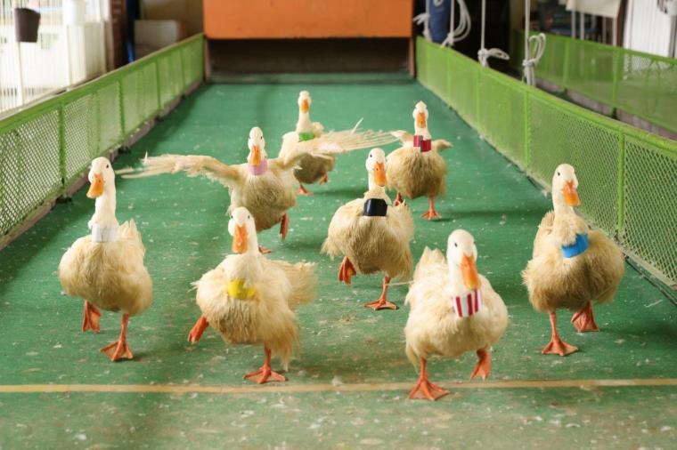 8마리의 아히루가 달리는 모습은 사랑스럽고 지켜보고 있는 사람들은 전력으로 응원!
