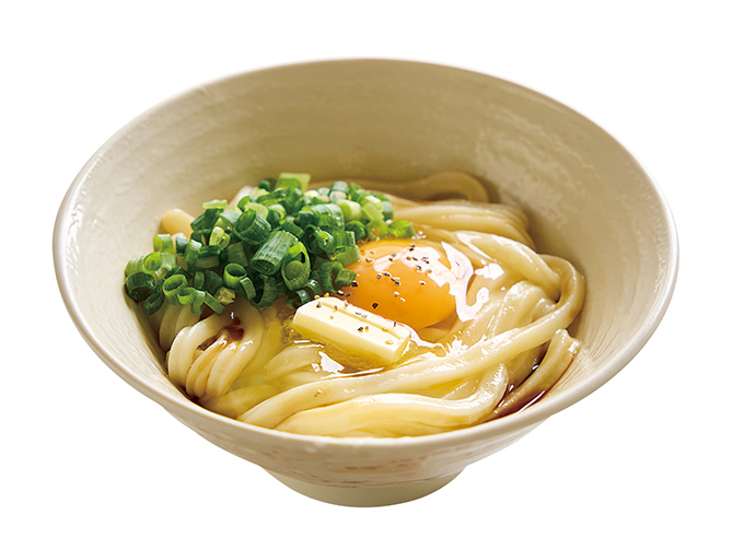 가마타마 버터 우동(소) 360엔. 생 계란과 버터의 부드러운 맛. 악센트에 블랙 페퍼