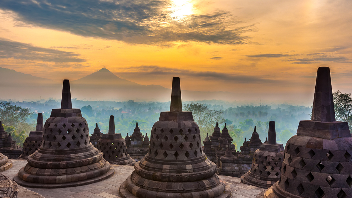 - 보로부두르 사원(Borobudur Temple): 유네스코 세계문화유산으로 지정된 거대한 9세기 대승 불교 사원입니다.