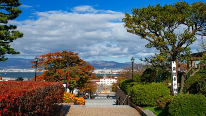 하코다테 산 기슭의 고대에 위치한 모토마치 공원은 하코다테의 거리와 하코다테 만을 내려다 볼 수 있는 절호의 위치.