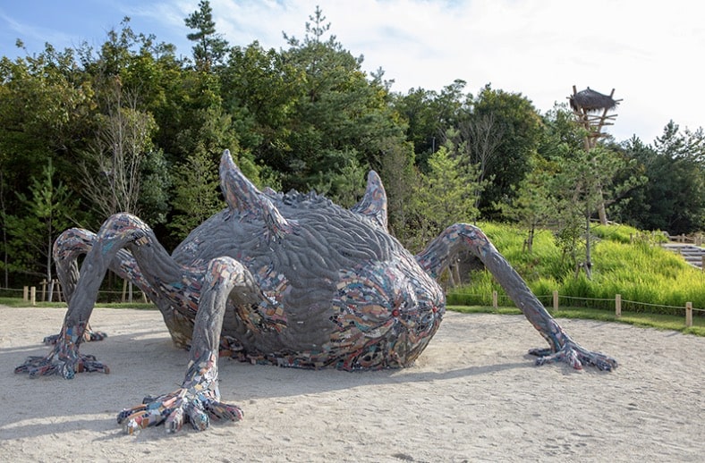 미야자키 하야오의 1997년 걸작 모노노케 공주를 테마로 한 모노노케 마을 섹션이 2023년 11월 1일 개관했습니다. 영화 속 일본의 전통적인 농촌 풍경을 반영한 지브리 파 지역입니다. 오코토 경, 악마 정령 등 영화 속 상징적인 캐릭터의 동상을 볼 수 있습니다. 다타라바 학습관에서는 지역 전통 음식인 고헤이모찌 만들기 등 독특한 체험을 즐길 수 있습니다.