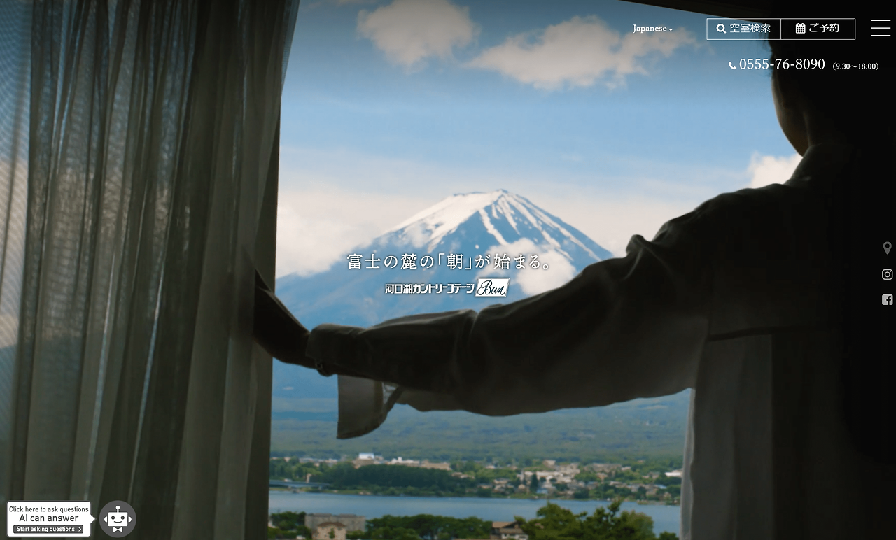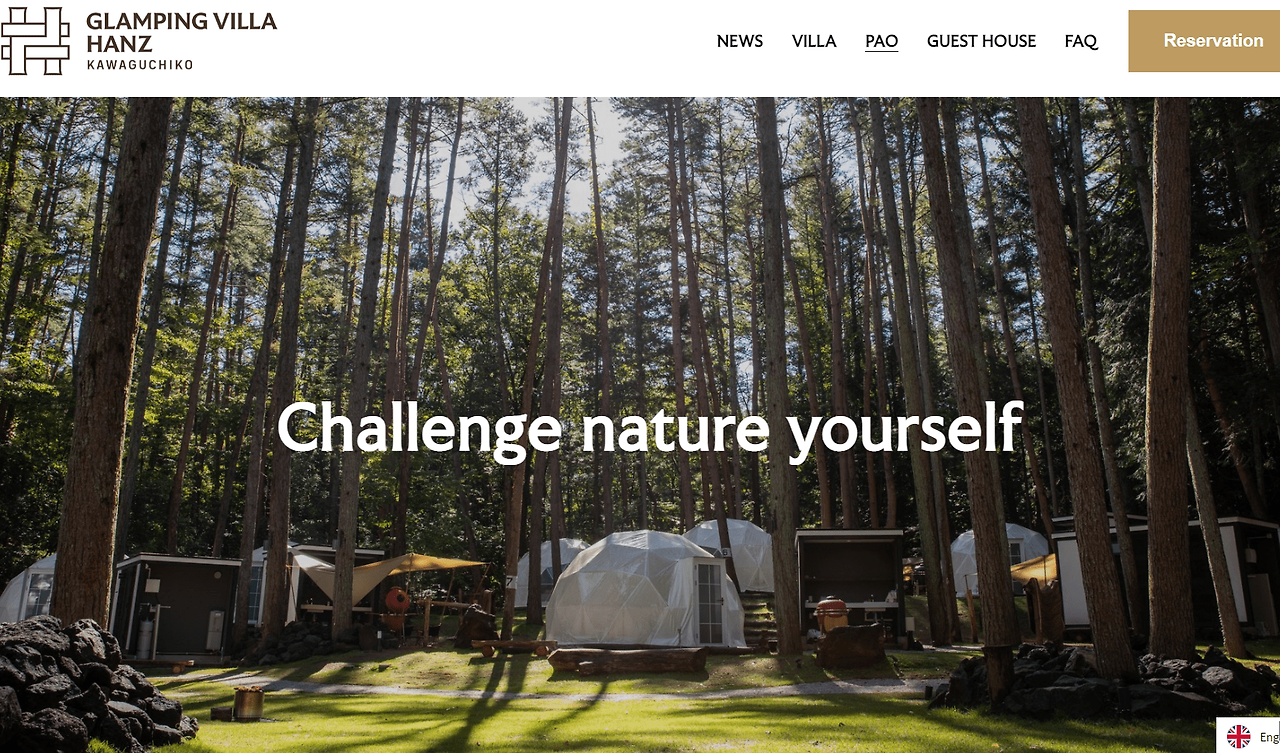 다음으로 소개할 곳은 후지산 북쪽에 위치한 또 다른 글램핑장인 글램핑 빌라 한즈 가와구치코(Granping Villa Hanz Kawaguchiko) 입니다. 이 부지는 이전 부지보다 가와구치코 호수 반대편에 위치하여 후지산에 더욱 가깝습니다.