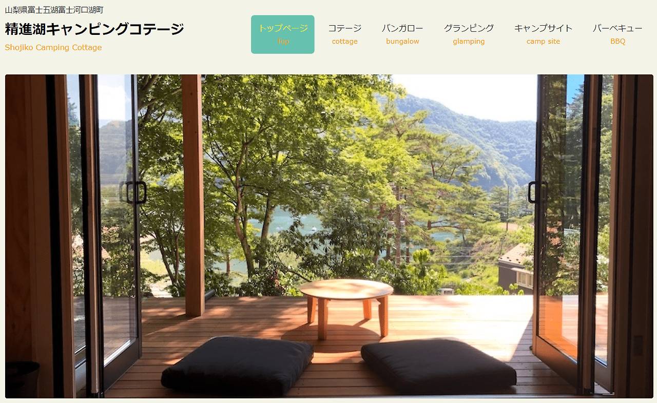 다음 글램핑장은 야마나시현의 다른 글램핑장에 비해 조금 떨어진 곳에 위치해 있습니다. 쇼지코 캠핑 코티지(精進湖캐핑코테이지)는 후지산 북서쪽, 쇼지코 호수 바로 옆에 위치해 있습니다. 이곳에서는 글램핑뿐만 아니라 원하시면 일반 캠핑 손님으로도 숙박하실 수 있습니다. 이 지역은 이전에 이 목록에 소개된 지역과 비교하여 더 제거된 위치입니다.