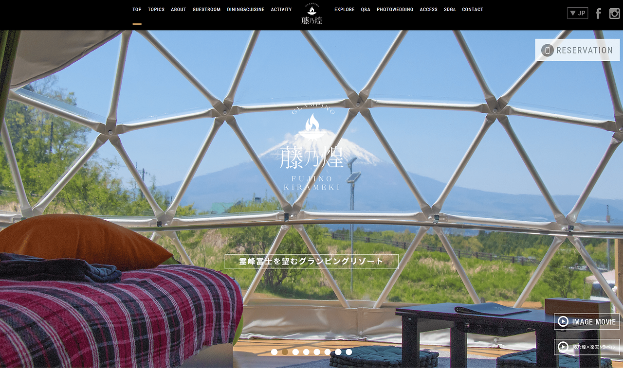 마지막으로 이 목록에서는 후지산 반대편으로 이동합니다. 후지노 키라메키(藤乃煌 富士御殿場)도 인기가 높은 또 다른 글램핑장이지만 이 곳은 시즈오카현 고템바시에 위치해 있습니다. 후지산 남동쪽에 위치하여 이곳에서 보는 후지산의 모습은 전혀 다릅니다.