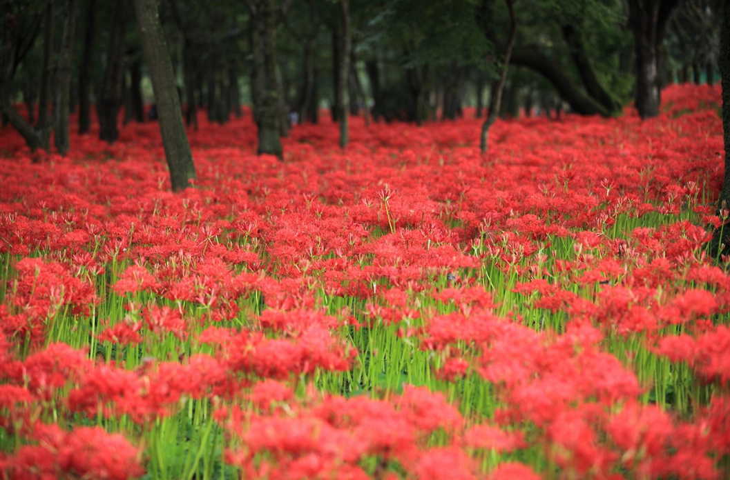 초가을의 상징인 히간바나 꽃(붉은 백합)의 일본 최대 규모의 꽃밭은 도쿄에서 불과 1시간 거리인 사이타마현에 있습니다. 9월 중순부터 500만 송이의 뜨거운 꽃이 불꽃을 튀깁니다.
