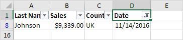 결과. Excel은 지난 달의 매출만 표시합니다.