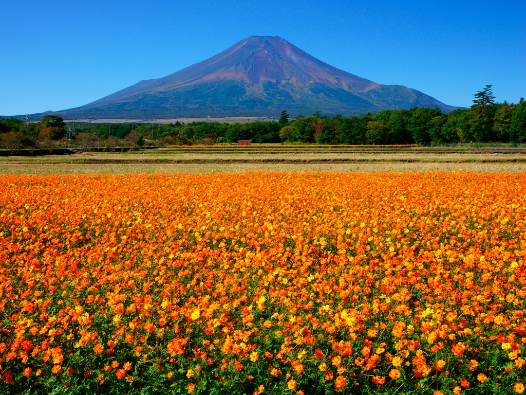 야마나카코 하나노 미야코 공원(山中湖 花の都公園)은 후지 5대 호수 중 가장 큰 야마나카 호수(또는 야마나카코 山中湖) 옆에 있습니다. 이 광대한 공원은 봄부터 가을까지 다양한 계절의 꽃을 전시하며, 배경에는 해바라기, 튤립, 코스모스 등 후지산의 놀라운 전망이 있습니다.