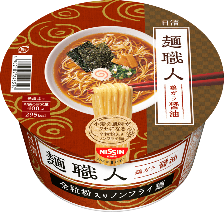 일반적으로 많은 인스턴트 라면은 튀긴 국수(가열된 기름으로 튀긴 후 건조)로 만들어지지만, Nissin Men Shokunin(日清 麺職人) 시리즈는 더 건강하고 칼로리를 낮춘 튀기지 않은 국수를 제공합니다. 인스턴트 라면은 보통 칼로리가 높지만, 이 라면은 건강한 식사를 하는 사람에게도 추천할 만합니다. 간장 맛은 전통적이고 소박한 수프와 끓인 해산물, 중간 얇은 직면과 함께 제공됩니다.