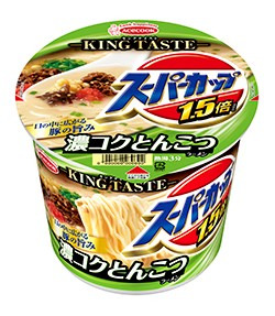 Acecook의 Super Cup 시리즈는 원래 1988년에 출시되었으며 수년 동안 일본에서 가장 많이 팔린 인스턴트 라면이었습니다. 많은 팬들이 면을 더 많이 넣어달라는 요청에 에이스쿡은 면의 양을 60g에서 90g(1.5배)으로 늘리기로 결정했다. 그리하여 슈퍼컵 1.5배 돈코츠 라면(에이스코크스파캅1.5倍 濃coktonngkoつra-men)은 실제 유저들의 목소리를 담아 탄생했으며, 돈코츠가 가장 인기 있는 맛입니다. 정통의 시그니처 돈코츠 국물이 가는 면발과 잘 어울립니다.