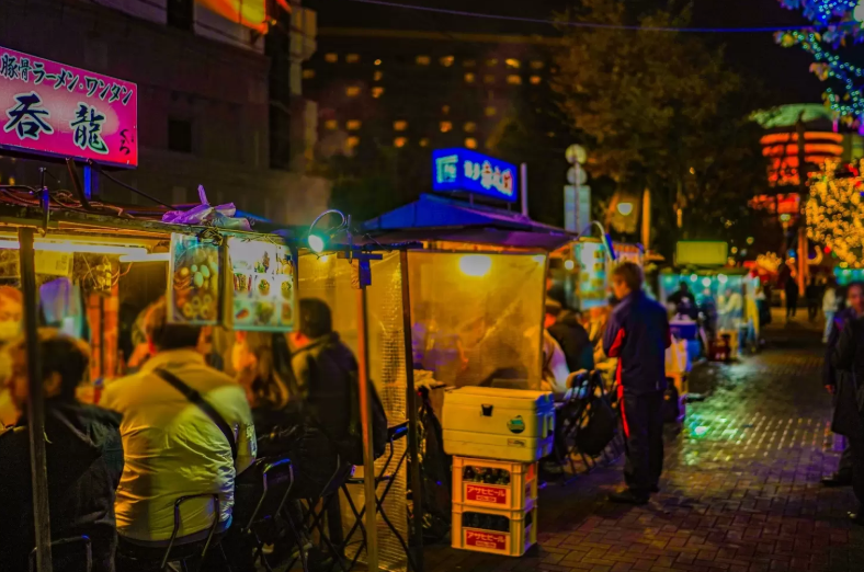 후쿠오카의 대표적인 야타이(屋台, 포장마차) 거리는 텐진(天神)과 나카스(中洲) 지역에서 저녁 6시부터 운영됩니다. 돈코츠 라멘, 야키라멘, 야키토리 등 다양한 현지 음식을 맛볼 수 있으며, 소규모 공간에서 다른 여행객들과 소통하는 재미도 있습니다.