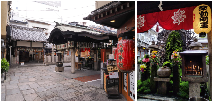 호젠지 사원(法善寺)은 1637년에 설립된 역사적인 불교 사원입니다. 이 사원은 부도 미요(佛像 미요)를 숭배하는 곳으로, 방문객들이 미요 동상에 물을 뿌리며 행운과 축복을 기원하는 전통이 있습니다. 특히 야경이 아름다워, 도톤보리의 분주함 속에서 평화로운 시간을 보내고 싶을 때 방문하기 좋은 장소입니다.