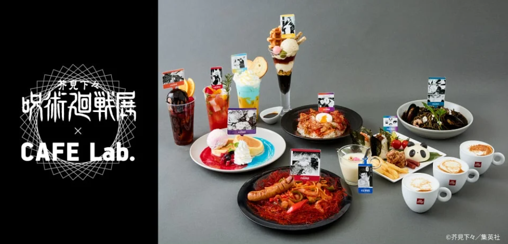 또한, 전시회 기간 동안 오사카의 *CAFE Lab.*에서는 주술회전 테마의 한정 콜라보 카페가 운영됩니다. 카페에서는 주술회전의 독특한 캐릭터들, 기술, 그리고 유명한 장면들을 모티브로 한 10종의 오리지널 메뉴를 만나볼 수 있습니다. 메뉴에는 음료, 음식, 디저트가 포함되어 있으며, 카페는 특별한 장식으로 꾸며져 전시회 분위기를 한층 더 고조시킬 것입니다.