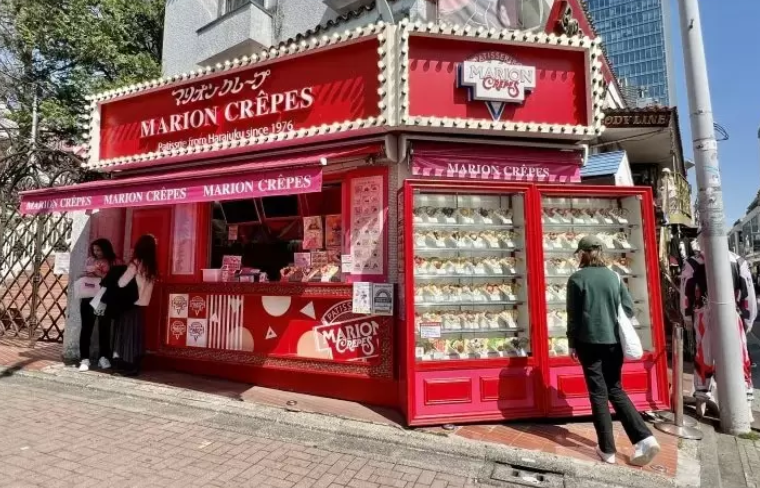 하라주쿠에서 유명한 크레페 전문점 '마리온 크레페'는 50년 이상의 역사를 자랑하며, 아이스크림과 과일을 곁들인 독특한 크레페를 제공합니다. 타케시타 거리에서 꼭 방문해 볼 가치가 있는 곳입니다.
