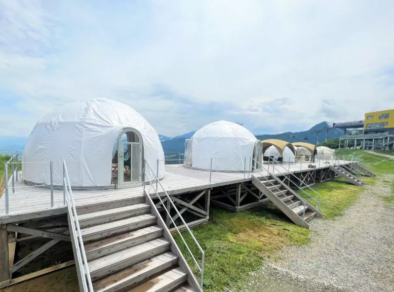 자연은 즐기고 싶지만 야외가 익숙하지 않은 분들을 위해 투명한 돔 텐트가 마련되어 있습니다. 냉난방이 완비된 텐트에는 테이블, 의자, 블랭킷, 카드게임, 장난감 등도 준비되어 있어 아이 동반 가족에게도 안성맞춤입니다.